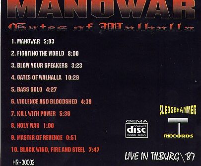 Gates of Walhalla; CD Live; Germany; 1987; Sledgehammer; HR-30002; Bootleg (Red CD)