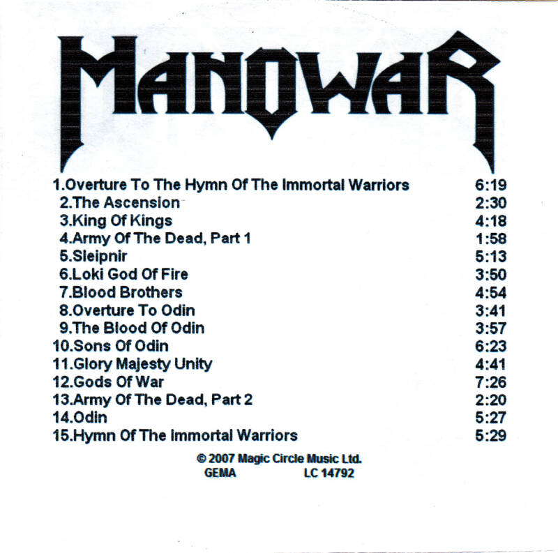 Gods of War; CD; EU; 2007; SPV / Magic Circle Music; MCA 01204-2; Promo