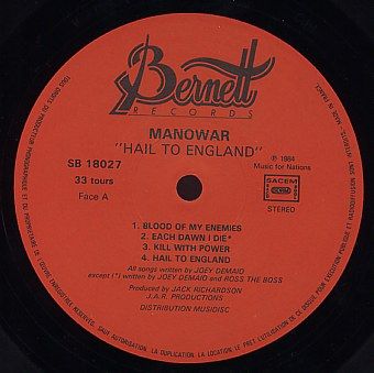 Hail to England; LP; France; 1984; Bernett; Records; SB 18027