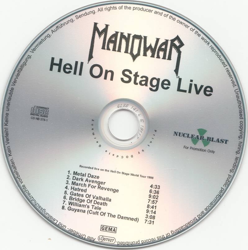 Hell on stage live; 1998; CD; Germany; ND 379-2/LC 07027 GEMA (Nuclear Blast); promo dubbel cd