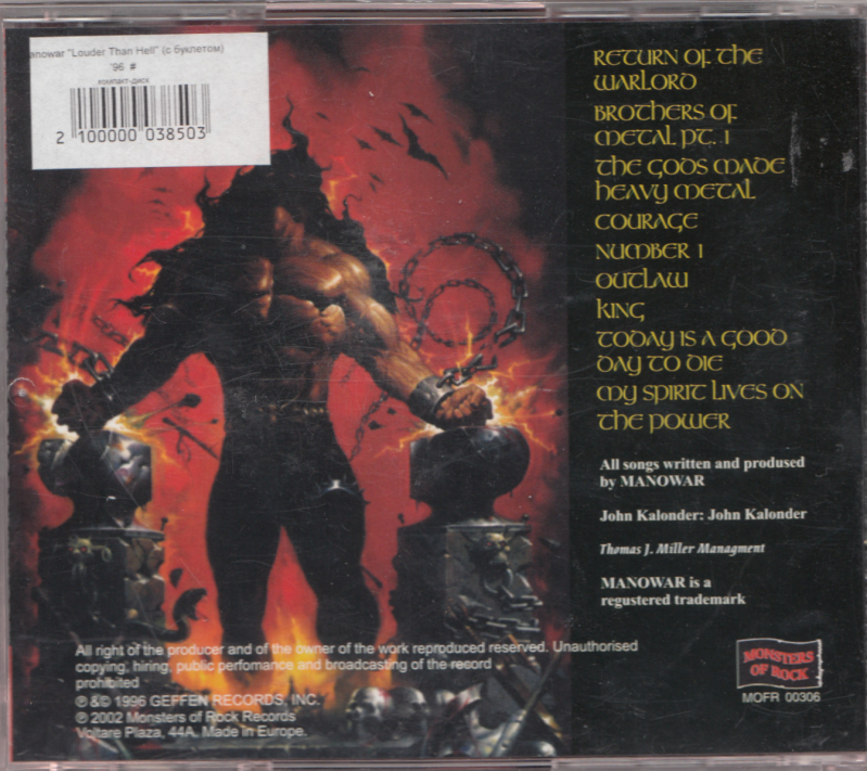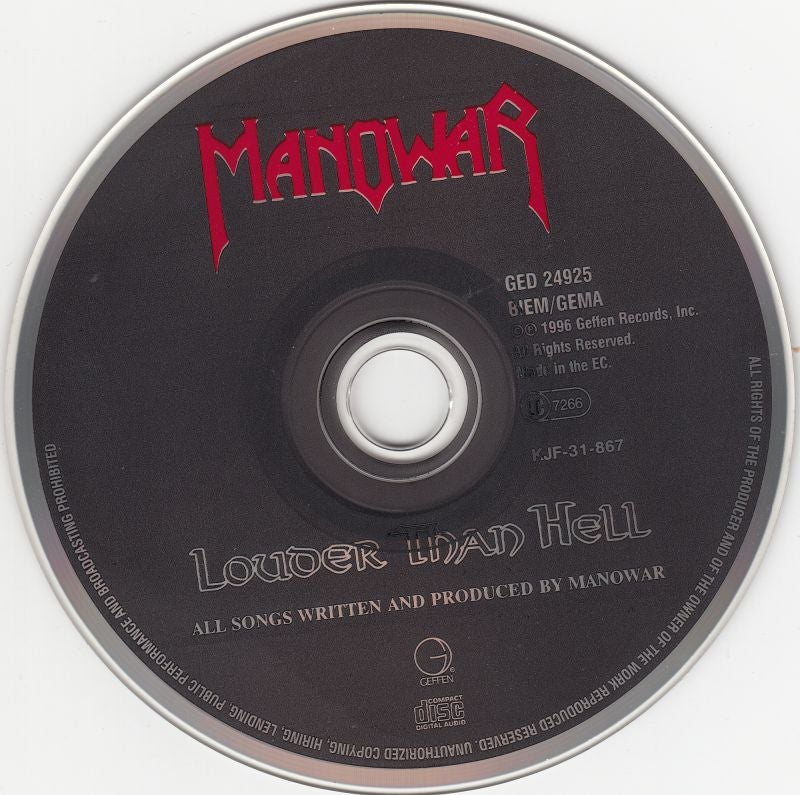 Louder than Hell; CD; EU; 1996; Geffen; GED 24925 ; KJF-31-867 on disc; Manowar darker colors